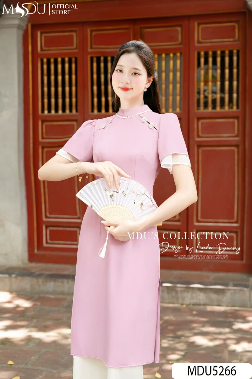 MDU5266 với sắc hồng pastel nhã nhặn là lựa chọn hoàn hảo cho các buổi lễ, sự kiện, chụp hình kỷ niệm hay dịp lễ hội truyền thống. Đây không chỉ là một bộ trang phục, mà còn là sự kết tinh giữa vẻ đẹp hiện đại và nét duyên truyền thống của người phụ nữ Việt, giúp nàng luôn tự tin và tỏa sáng trong từng khoảnh khắc.