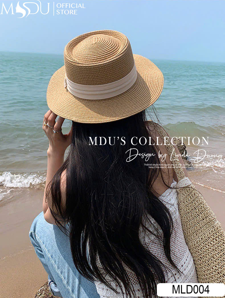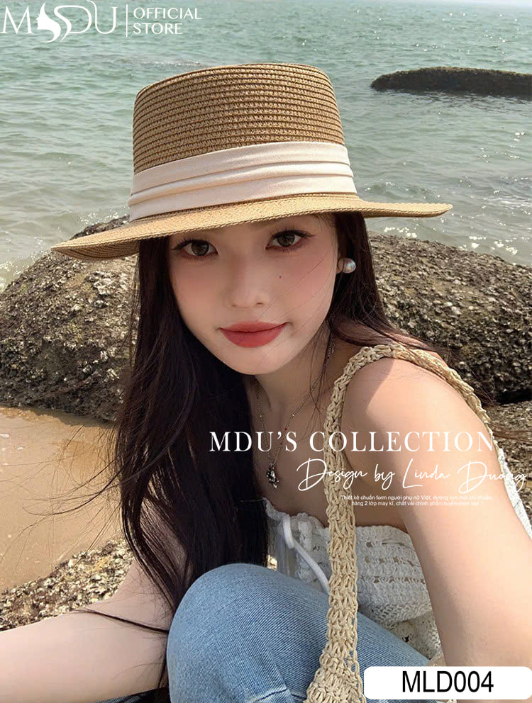 MLD004 của MDU Fahsion là lời thì thầm dịu dàng của mùa hè dành cho những quý cô yêu phong cách tinh tế và cổ điển. Thiết kế dạng boater dáng tròn phẳng cùng vành mũ rộng vừa phải tạo nên một tổng thể hài hòa, thanh lịch. Chiếc nơ lụa trắng kem ôm sát quanh chân mũ trở thành điểm nhấn mềm mại, mang theo tinh thần của sự nhã nhặn và đầy nữ tính.