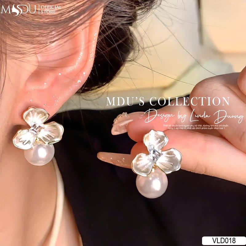 Bông tai thiết kế VLD018 của MDU Fashion là sự kết tinh giữa vẻ đẹp thiên nhiên và nghệ thuật chế tác trang sức đỉnh cao. Lấy cảm hứng từ cánh hoa đang hé nở, phần đính tai được tạo hình bông hoa ánh bạc tinh tế, phối hợp cùng ngọc trai tròn bản lớn đính dưới – mang đến một thiết kế hài hòa giữa vẻ đẹp nhẹ nhàng và nét thanh lịch đậm chất nữ tính.