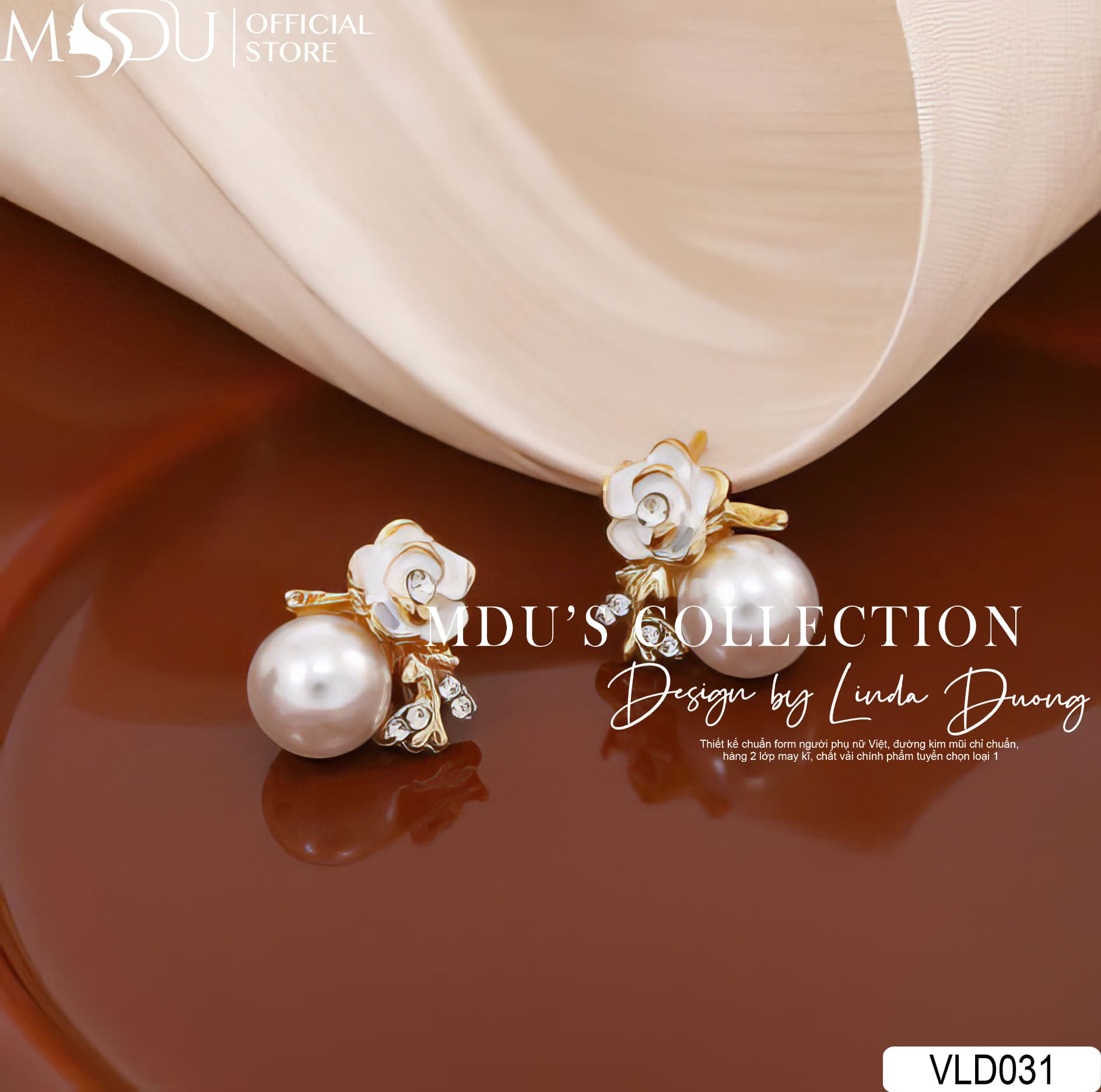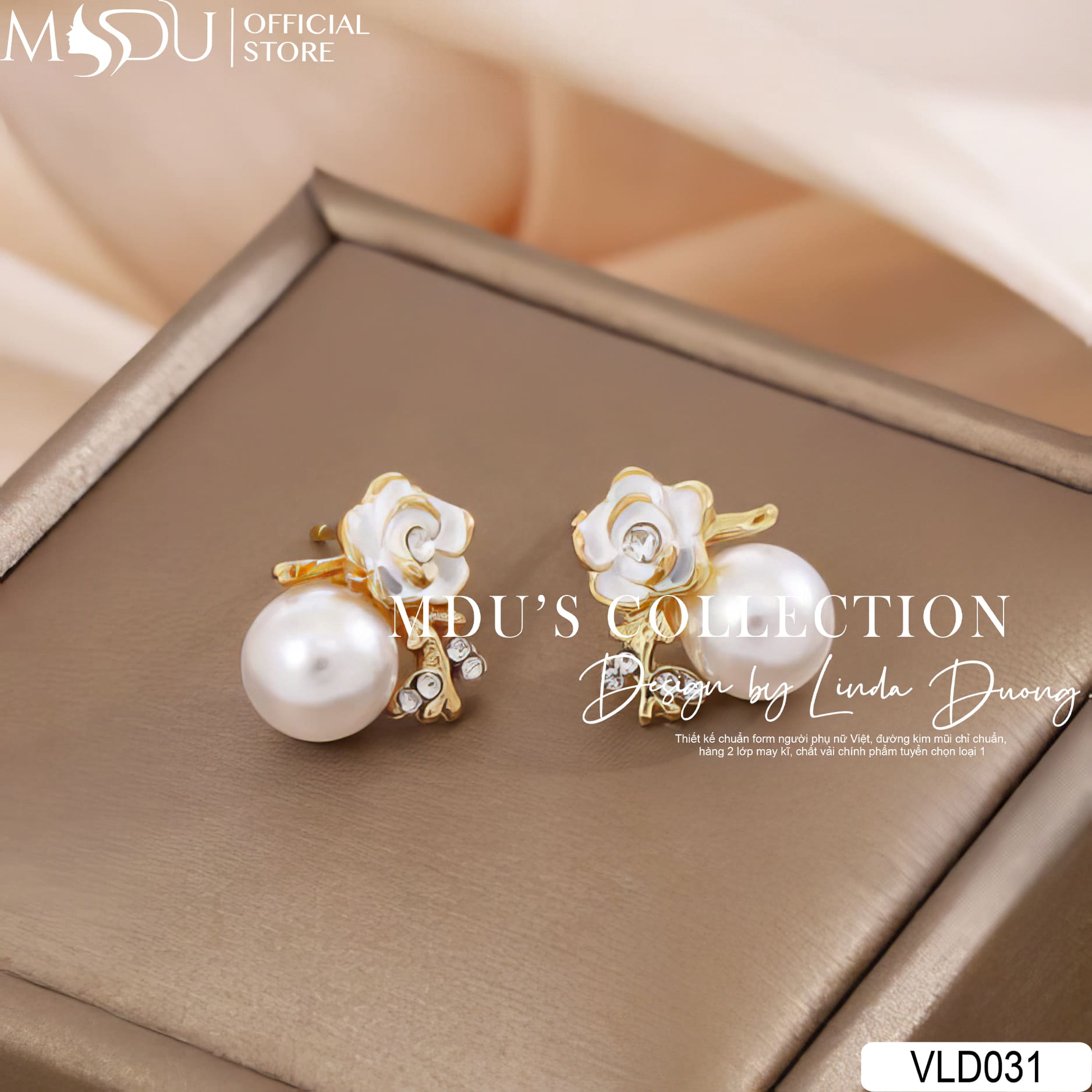 VLD031 – Hoa Tai Ngọc Trai Đính Hoa Trắng Sang Trọng