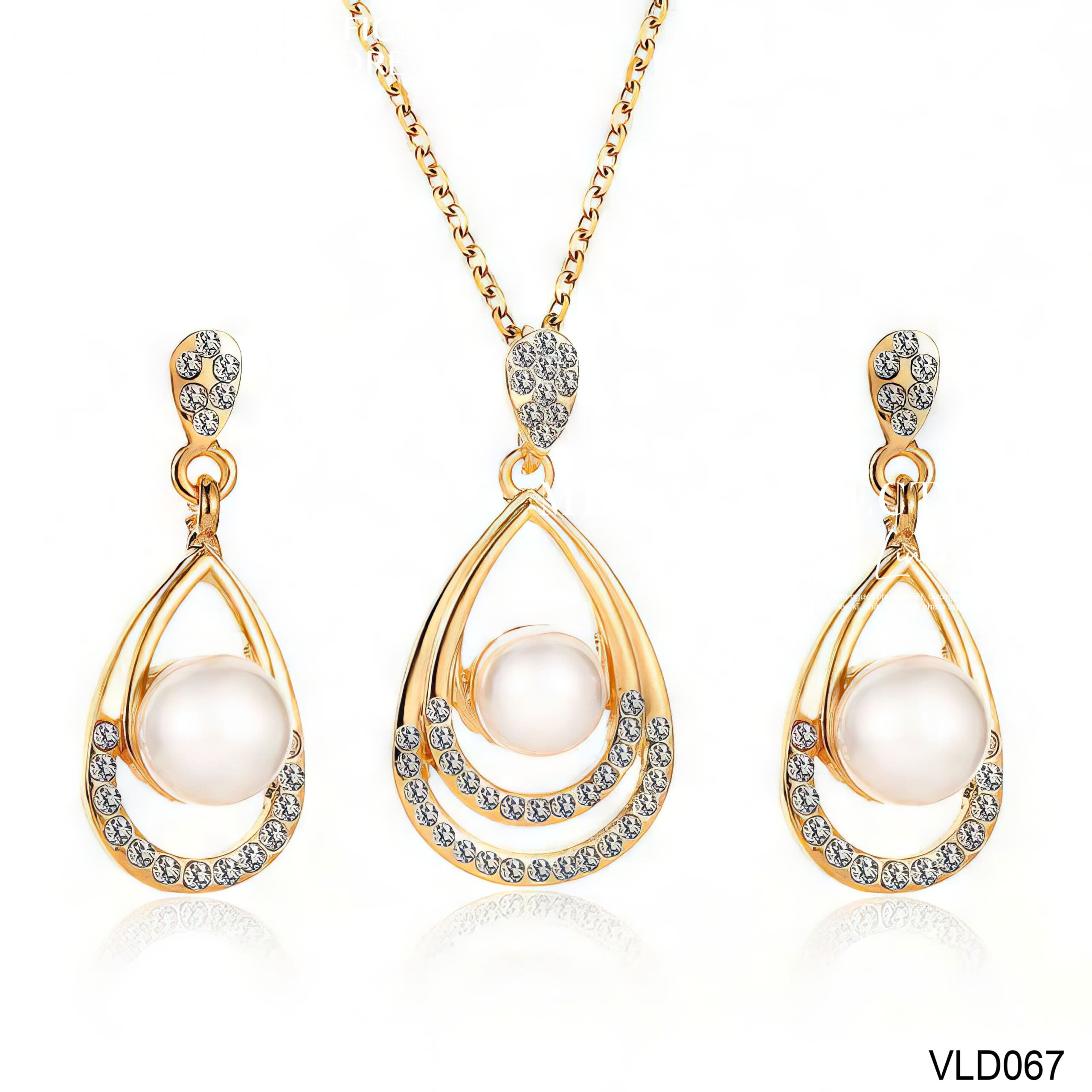 VLD067 – Bộ Trang Sức Ngọc Trai Thiết Kế Hình Giọt Nước Ánh Vàng