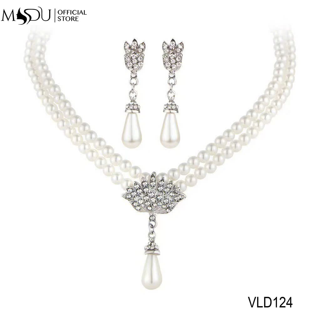 VLD124 nhà MDU Fashion gây ấn tượng mạnh với thiết kế hai dây ngọc trai kết hợp viên đá pha lê cắt giác tinh xảo ở trung tâm. Hoa tai giọt ngọc trắng nhẹ nhàng hoàn thiện bộ phụ kiện, mang đến vẻ đẹp quý phái và sang trọng. Đây là lựa chọn lý tưởng cho những sự kiện quan trọng, giúp người dùng nổi bật với phong cách tinh tế và đẳng cấp.