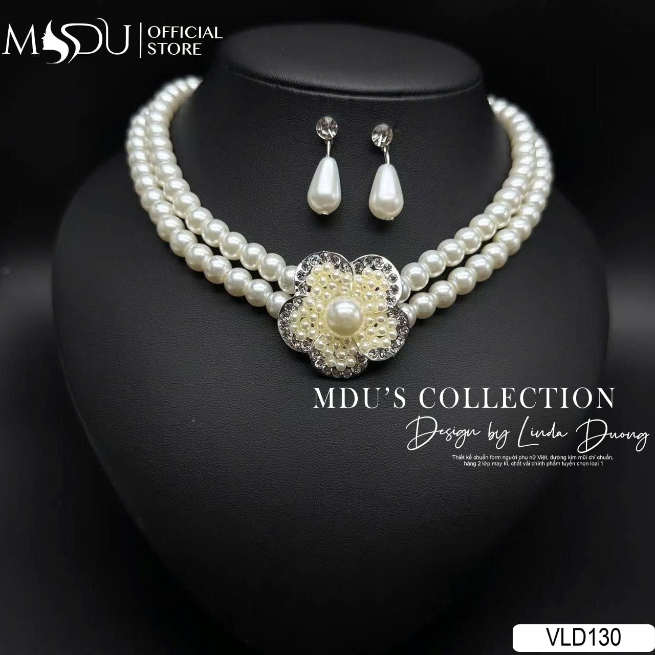 VLD130 thể hiện sự đẳng cấp và gu thẩm mỹ tinh tế qua từng chi tiết nhỏ nhất. Mẫu vòng cổ đôi ngọc trai cùng điểm nhấn hoa đính hạt tượng trưng cho sự mềm mại nhưng không kém phần kiêu sa, đồng thời giữ nét truyền thống hài hòa với phong cách hiện đại. Đây là món phụ kiện không thể thiếu cho những quý cô yêu thích vẻ đẹp sang trọng, nữ tính và độc đáo.