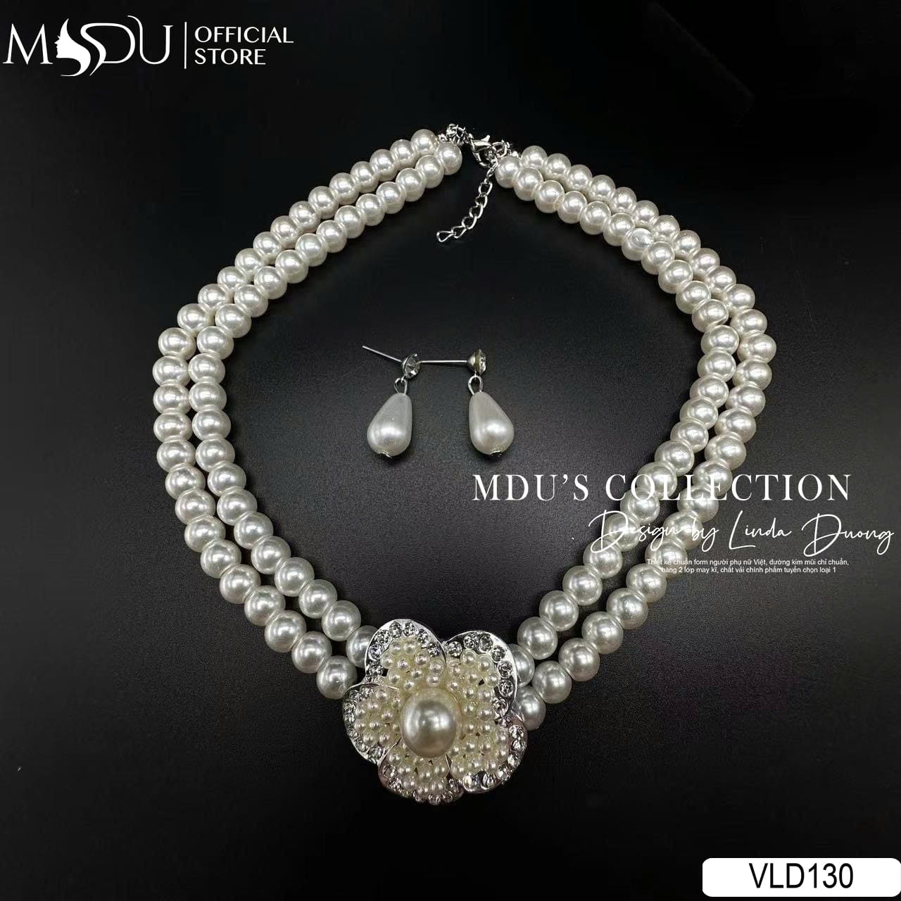 Bộ trang sức VLD130 nhà MDU Fashion gồm vòng cổ ngọc trai kép nổi bật với họa tiết hoa đính hạt cầu kỳ, kết hợp cùng hoa tai ngọc trai giọt nước nhẹ nhàng. Sự phối hợp hài hòa giữa những viên ngọc trai tròn bóng mịn và chi tiết hoa cườm lấp lánh tạo nên tổng thể tinh xảo, đậm nét quý phái. Thiết kế này hoàn hảo để giúp quý cô tỏa sáng rạng rỡ trong các buổi tiệc sang trọng hoặc sự kiện quan trọng.