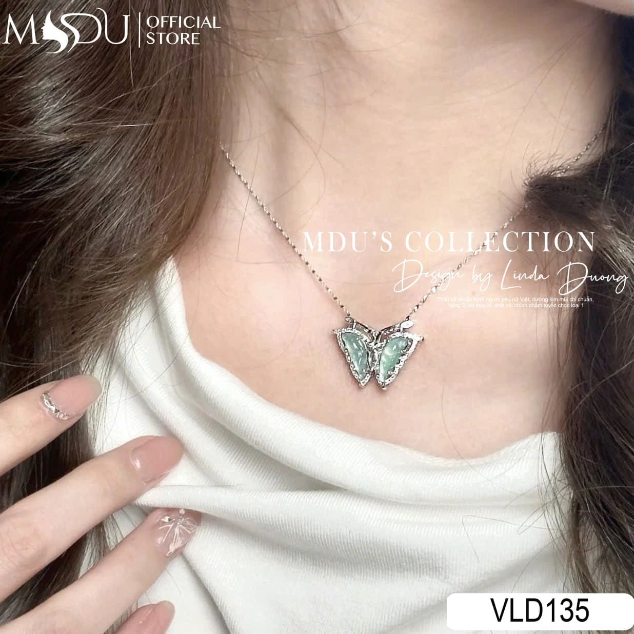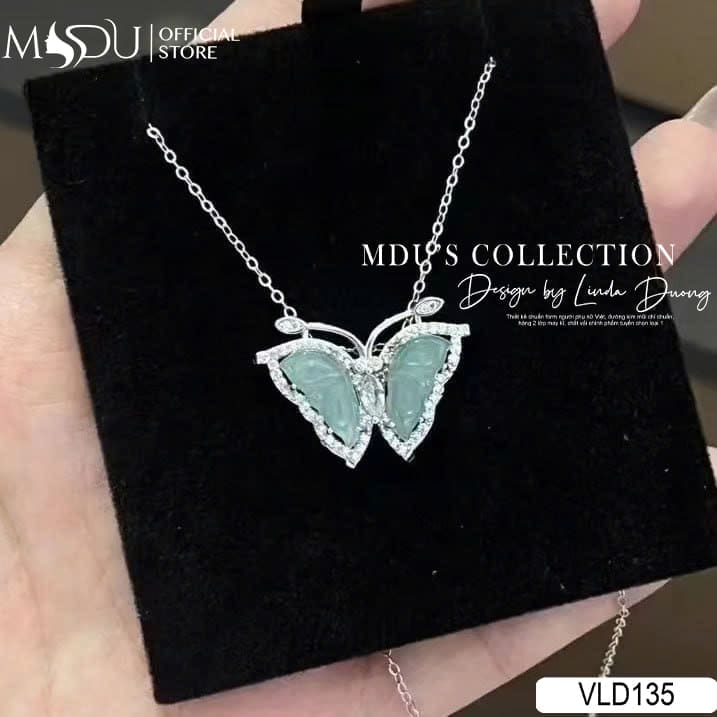 VLD135 – Dây chuyền mặt bướm đá xanh lục phối viền pha lê tinh tế. Thiết kế thanh thoát, nữ tính giúp tôn lên vẻ đẹp dịu dàng và sức sống của phái đẹp hiện đại. Phù hợp sử dụng trong nhiều hoàn cảnh, từ công sở đến dạo chơi, dễ dàng kết hợp với nhiều kiểu trang phục.