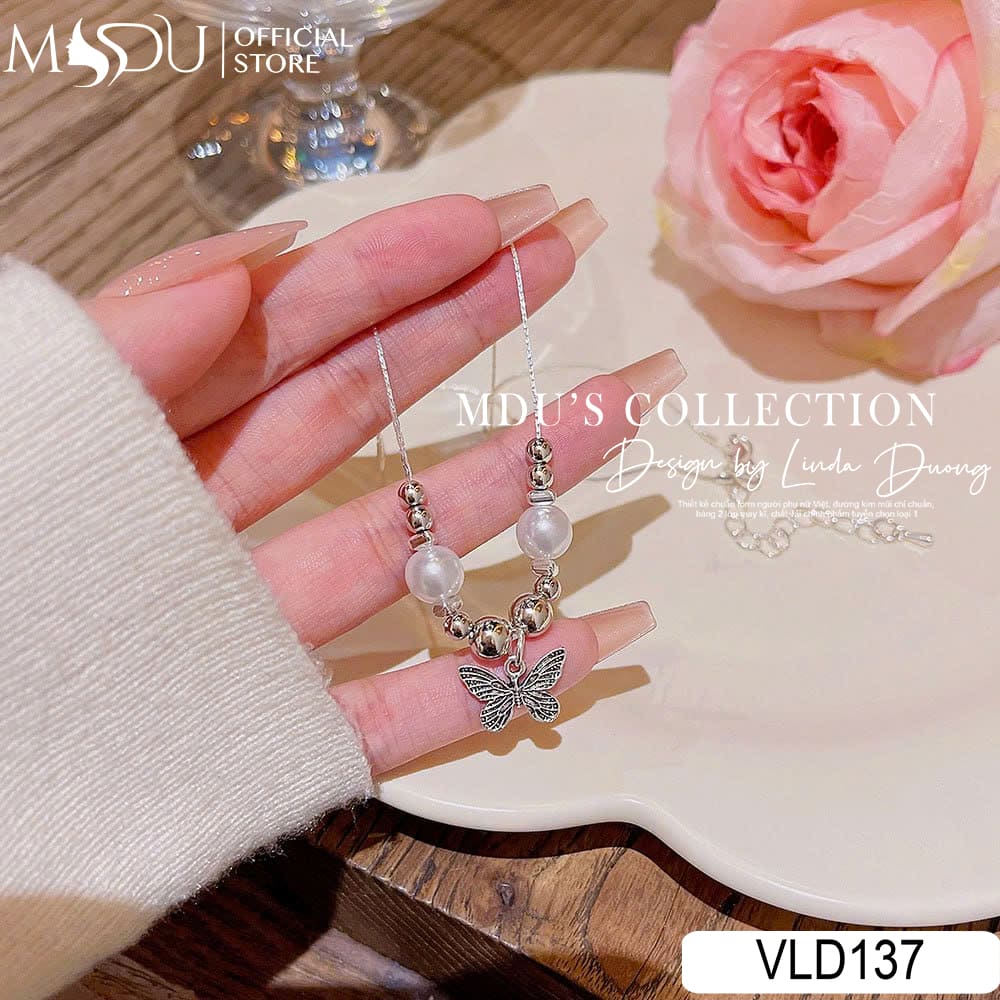 Bộ dây chuyền VLD137 nhà MDU Fashion chinh phục ánh nhìn với thiết kế mặt dây bướm nhỏ xinh được chế tác từ kim loại cao cấp, phối cùng những hạt ngọc trai trắng tinh khiết. Sự kết hợp giữa nét mềm mại của ngọc trai và đường nét sắc sảo của bướm kim loại tạo nên tổng thể hài hòa, tinh tế mà vẫn rất nữ tính. Sợi dây mảnh mai nhẹ nhàng ôm sát cổ, làm nổi bật vẻ đẹp thanh lịch, dịu dàng của người phụ nữ hiện đại. Đây là món phụ kiện hoàn hảo để tô điểm cho phong cách thường ngày hay những dịp đặc biệt.