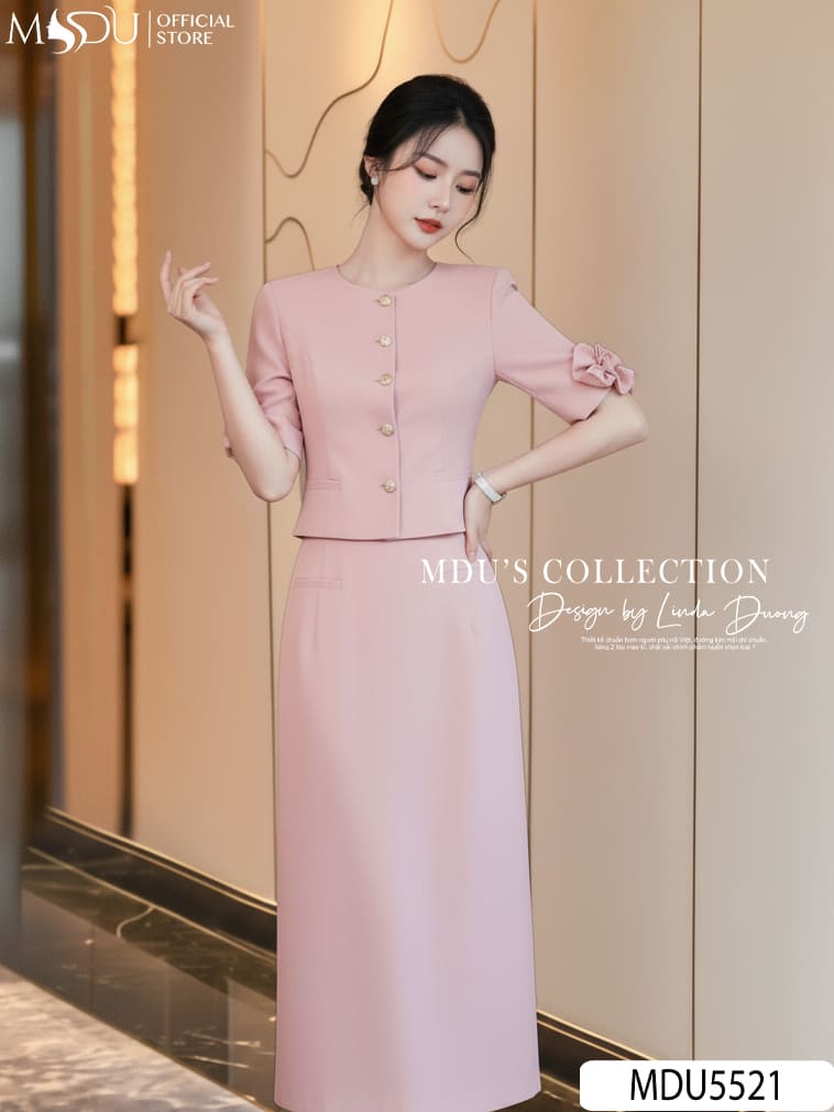 MDU Fashion hân hạnh giới thiệu thiết kế MDU5521 – một set đồ mang đậm tinh thần hiện đại và thanh lịch, được tạo nên từ chất Gold Hàn cao cấp với khả năng giữ form hoàn hảo. Sự kết hợp hài hòa giữa áo khoác dáng ngắn cổ tròn hai lớp và chân váy midi dài qua gối tạo nên tổng thể cân đối, chỉn chu và sang trọng trong từng chi tiết.