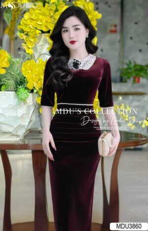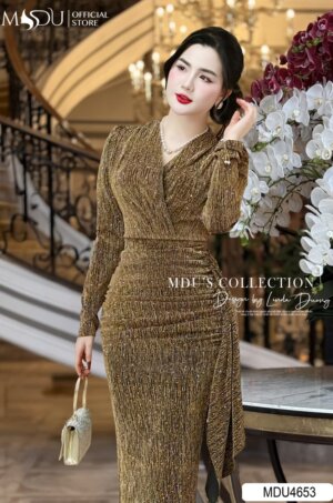 Váy Thiết Kế MDU4501 Dáng Ôm Dài Đính Ngọc Tinh Tế Phía Sau