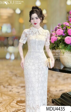 Váy Thiết Kế MDU4460 Cổ Tròn Thanh Lịch Hoa Thuê Tinh Xảo