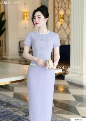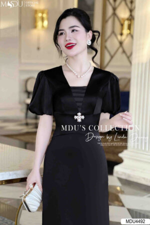 Váy Thiết Kế MDU4493 Cổ Cách Điệu Tay Bồng Tinh Tế