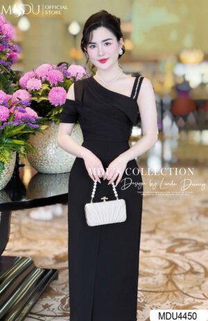 Váy Thiết Kế MDU4416 – Màu Đen Quyến Rũ Thiết Kế Cổ Thuyền Độc Đáo Phối Thêm Chuỗi Ngọc Đính Tinh Tế