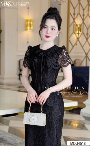 Váy Thiết Kế MDU4506 Ôm Body Màu Đen Họa Tiết Ren Đầy nghệ Thuật