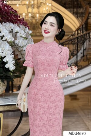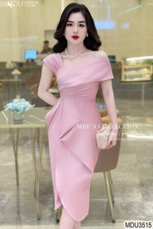 Váy Thiết Kế MDU3515 Xẻ Tà Quyến Rũ Màu Hồng Nhẹ Nhàng