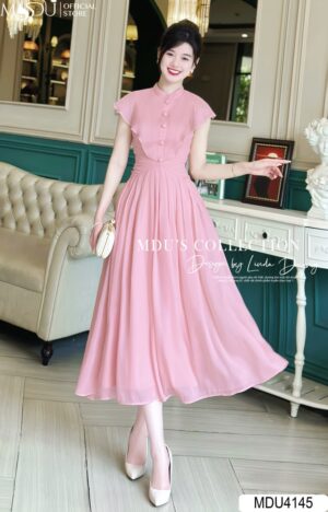 Váy Thiết Kế MDU4088 Vải Mango Hàn Chiết Eo Lạ Mắt Xếp Ly Ngực Thủ Công Dây Đính Eo Thời Thượng Và Thanh Lịch