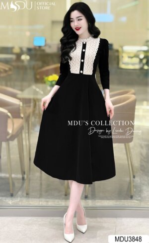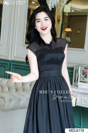 Váy Thiết Kế MDU4119 – Màu Đen Qúy Phái Cổ Sơ Mi Thanh Lịch Kết Hợp Cùng Tay Hến Cách Điệu