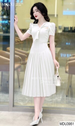 Váy Thiết Kế MDU3951 – Màu Trắng Tinh Khôi Tay Bồng Kết Hợp Chi Tiết Cut-Out Trước Ngực Quyến Rũ