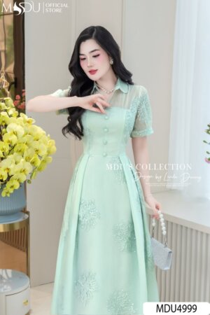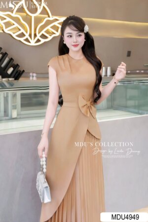 Váy Thiết Kế MDU4498 Dáng Ôm Dài Cổ Cách Điệu Đính Đá Sang Trọng