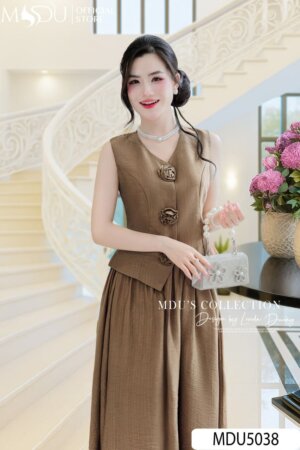 Váy Thiết Kế MDU5033 Bộ Short Vest Không Tay Tone Nâu Xước Thái Trẻ Trung Và Thanh Lịch