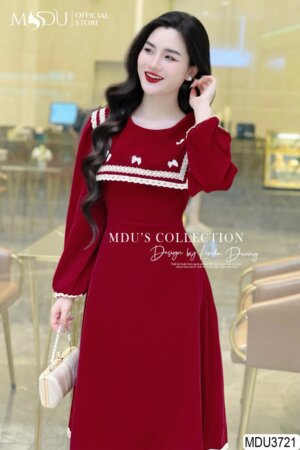 Váy Thiết Kế MDU3721 Màu Đỏ Thiết Kế Vai Bồng