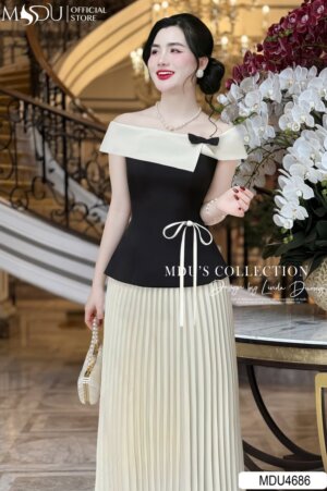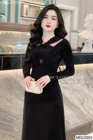 Váy Thiết Kế MDU3874 Dáng Dài Ôm Nhẹ Xoắn Eo Làm Điểm Nhấn