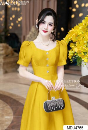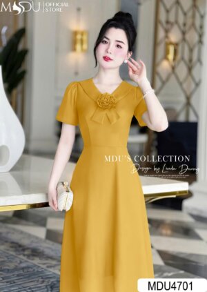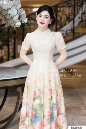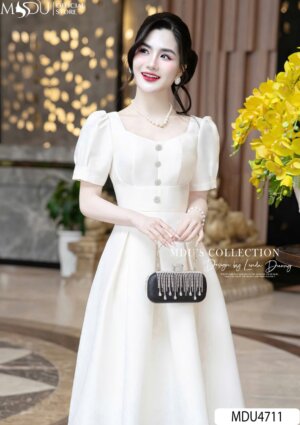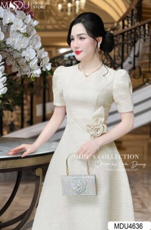 Váy Thiết Kế MDU4509 Chi Tiết Hoa Cài Duyên Dáng, Màu Kem Trang Nhã