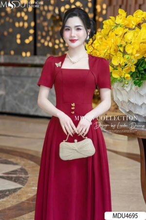 Váy Thiết Kế MDU4643 Màu Đỏ Cổ Xẻ Quyến Rũ
