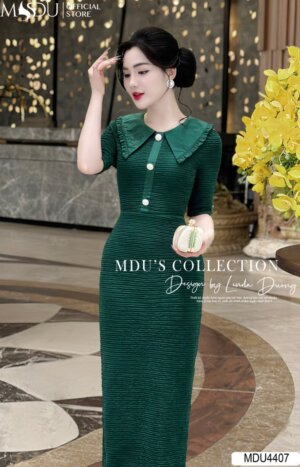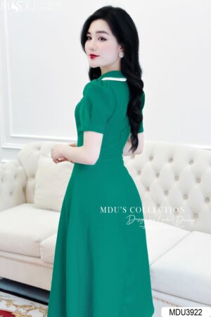 Váy Thiết Kế MDU4299 – Màu Xanh Lá Bắt Mắt Cổ Sơ Mi Thanh Lịch Cùng Họa Tiết Thêu Nổi Độc Đáo