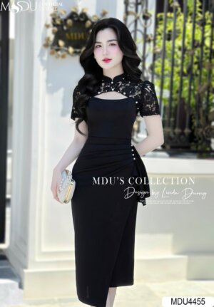 Váy Thiết Kế MDU4283 – Màu Đen Sang Chảnh Dáng Xòe Nhẹ Phối Hoạ Tiết Thanh Lịch Cuốn Hút
