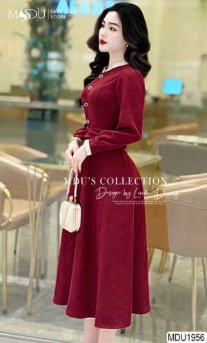 Váy Thiết Kế MDU4015 – Màu Đỏ Đô Sang Chảnh Với Họa Tiết Hoa Tạo Điểm Nhấn Cho Váy Tôn Lên Vẻ Đẹp Kiêu Kì
