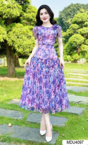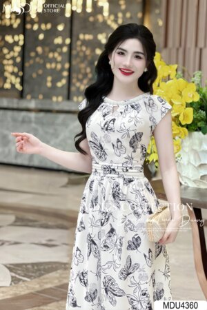 Váy Dáng Xòe MDU4238 Trễ Vai Cùng Họa Tiết Đơn Điệu