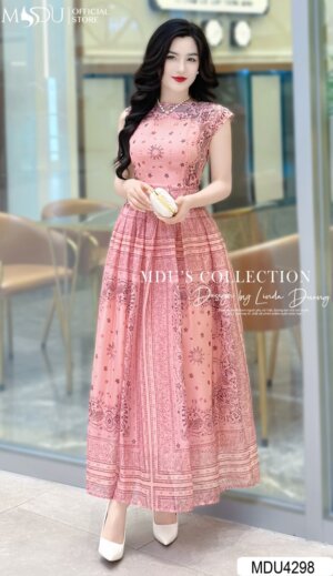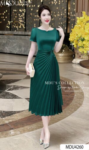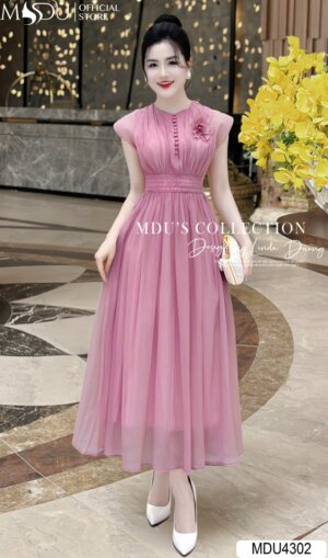 Váy Thiết Kế MDU3981 – Màu Hồng Xếp Li Tỉ Mỉ Phối Cùng Chi Tiết Cut – Out Trước Ngực Điệu Đà