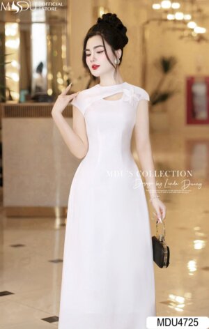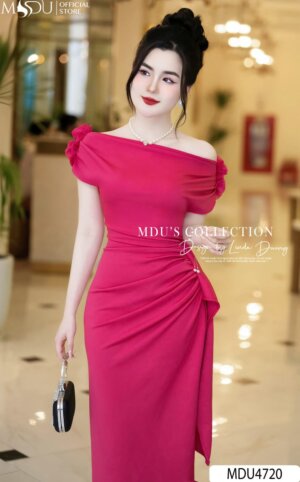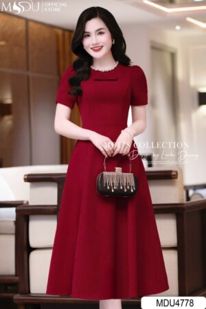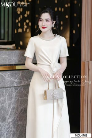 Váy Thiết Kế MDU4775 Cổ Hoa 3D Tơ Óng Hàn Tinh Tế