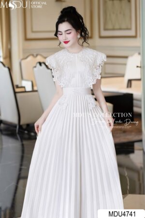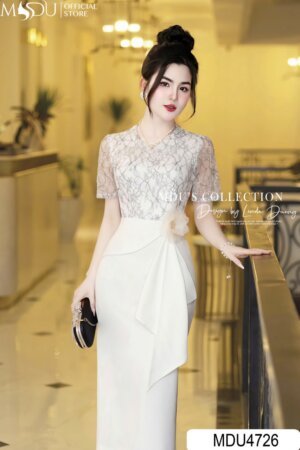 Váy Thiết Kế MDU4809 Trắng Kem Ren Thêu Dáng Ôm Tôn Dáng