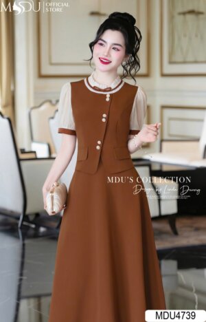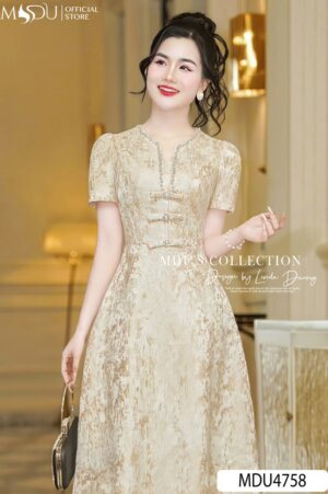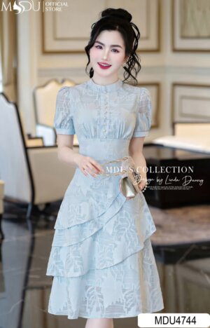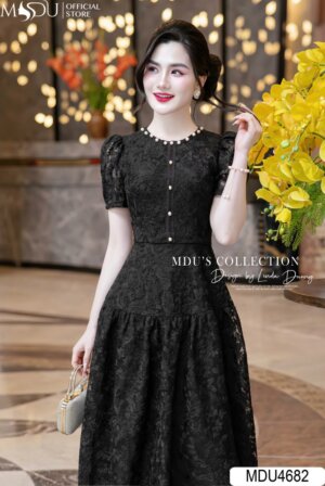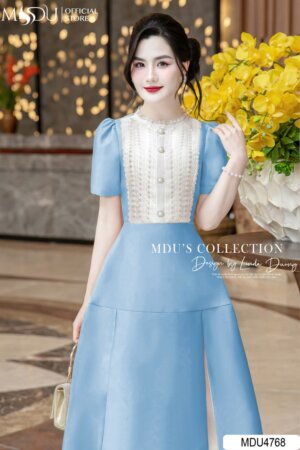 Váy Thiết Kế MDU4549 Cổ Hoa Đính Cùng Chất Ren Mềm Mại