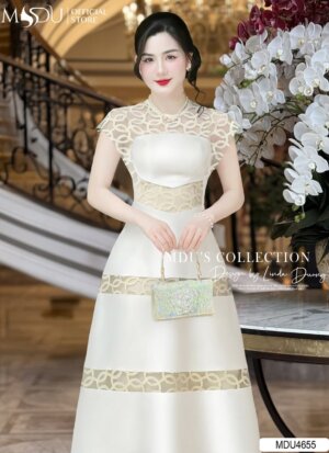Váy Thiết Kế MDU4530 Màu Kem Đính Khuy Đá Lấp Lánh