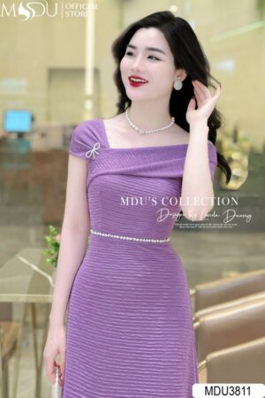 Váy Thiết Kế MDU3647 Dáng Ôm Tay Hến Chân Váy Xẻ Cách Điệu Quý Phái