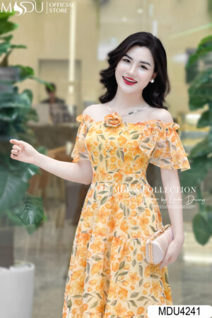 Váy Đi Biển MDU4121 Trễ Vai Cổ Yếm Duyên Dáng