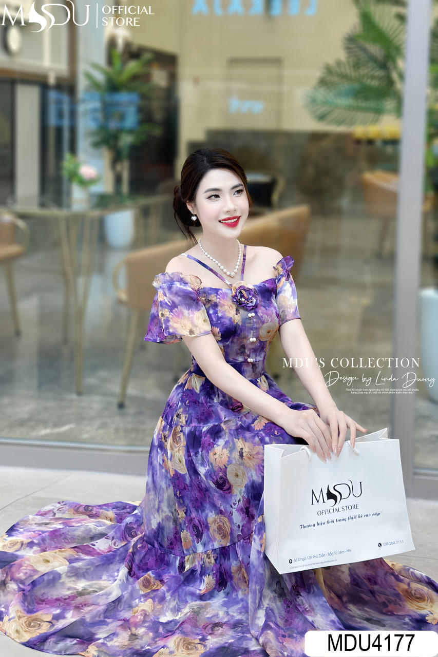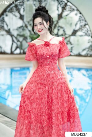 Váy Thiết Kế MDU3979 Tông Cảm Đỏ Bắt Mắt Hoa Tiết In 5D Mix Hoa Vai Quyến Rũ Và Thanh Lịch