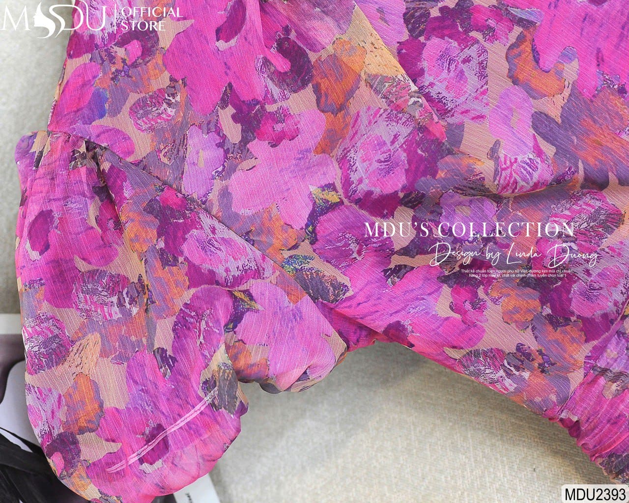 MDU2393 nổi bật với thiết kế cổ tròn và tay bồng, họa tiết hoa tươi tắn và bắt mắt mang lại vẻ đẹp thanh lịch và cuốn hút. Thiết kế dáng xòe nhẹ nhàng tạo vẻ đẹp nữ tính và duyên dáng. Khóa sau được giấu kín, cùng với các đường may cẩn thận, tạo nên sự hoàn hảo và sang trọng.