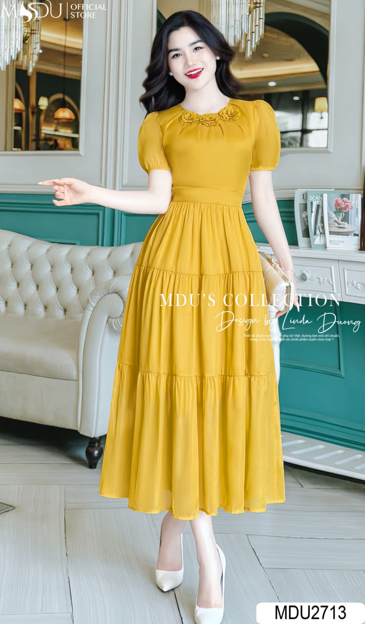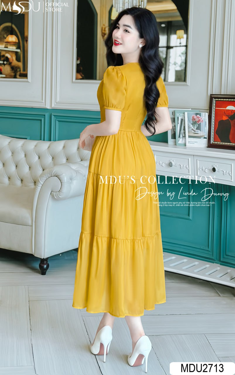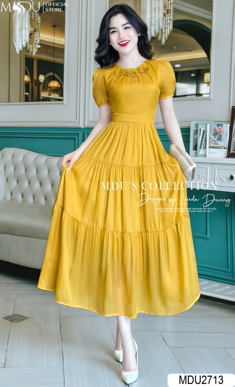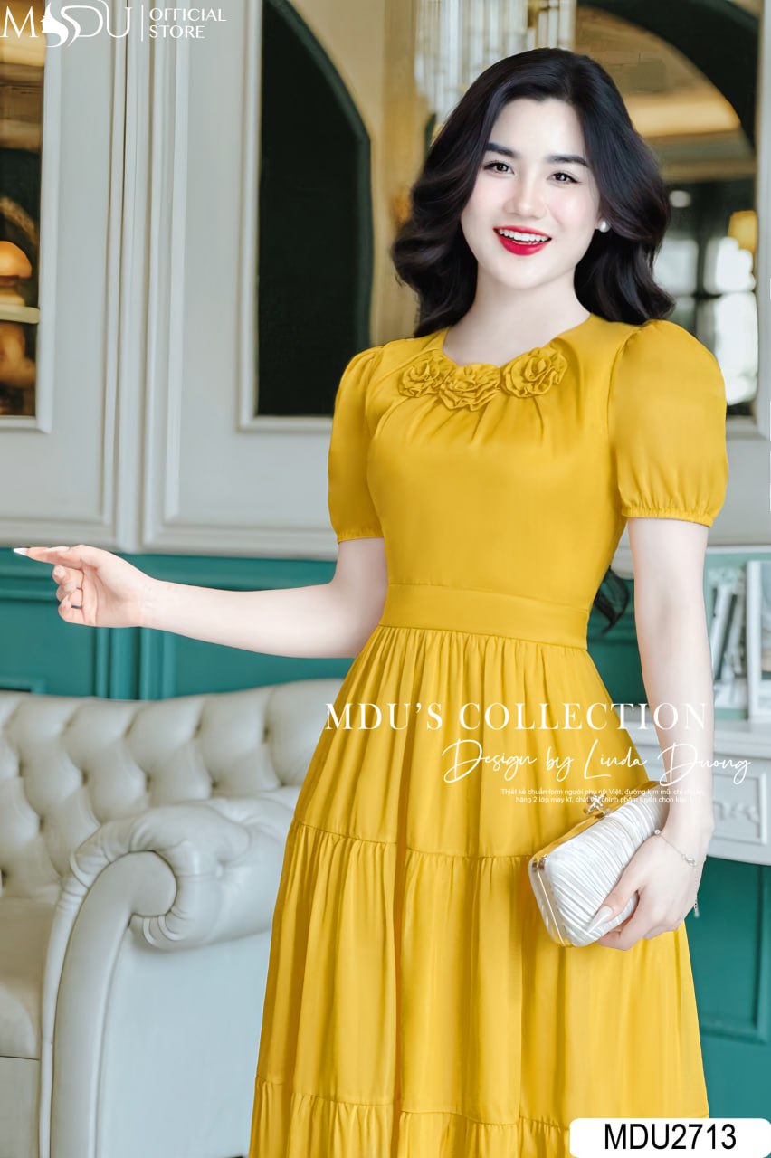 MDU2713 nổi bật với thiết kế cổ đính hoa tạo điểm nhấn điệu đà và lôi cuốn. Thiết kế dáng xòe nhẹ nhàng, cùng màu vàng óng bắt mắt, tạo vẻ đẹp nổi bật và cuốn hút. Khóa sau được giấu kín, cùng với các đường may cẩn thận, tạo nên sự hoàn hảo và sang trọng. Chiếc váy này không chỉ thích hợp cho các buổi tiệc mà còn phù hợp khi đi công sở hay dạo phố, đảm bảo tính ứng dụng cao và không bao giờ lỗi mốt.