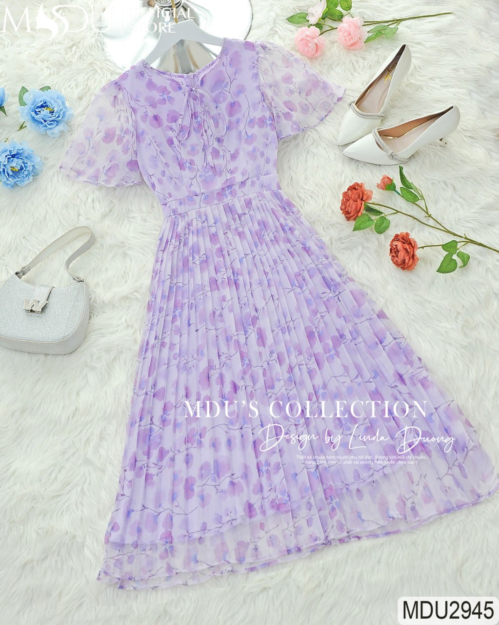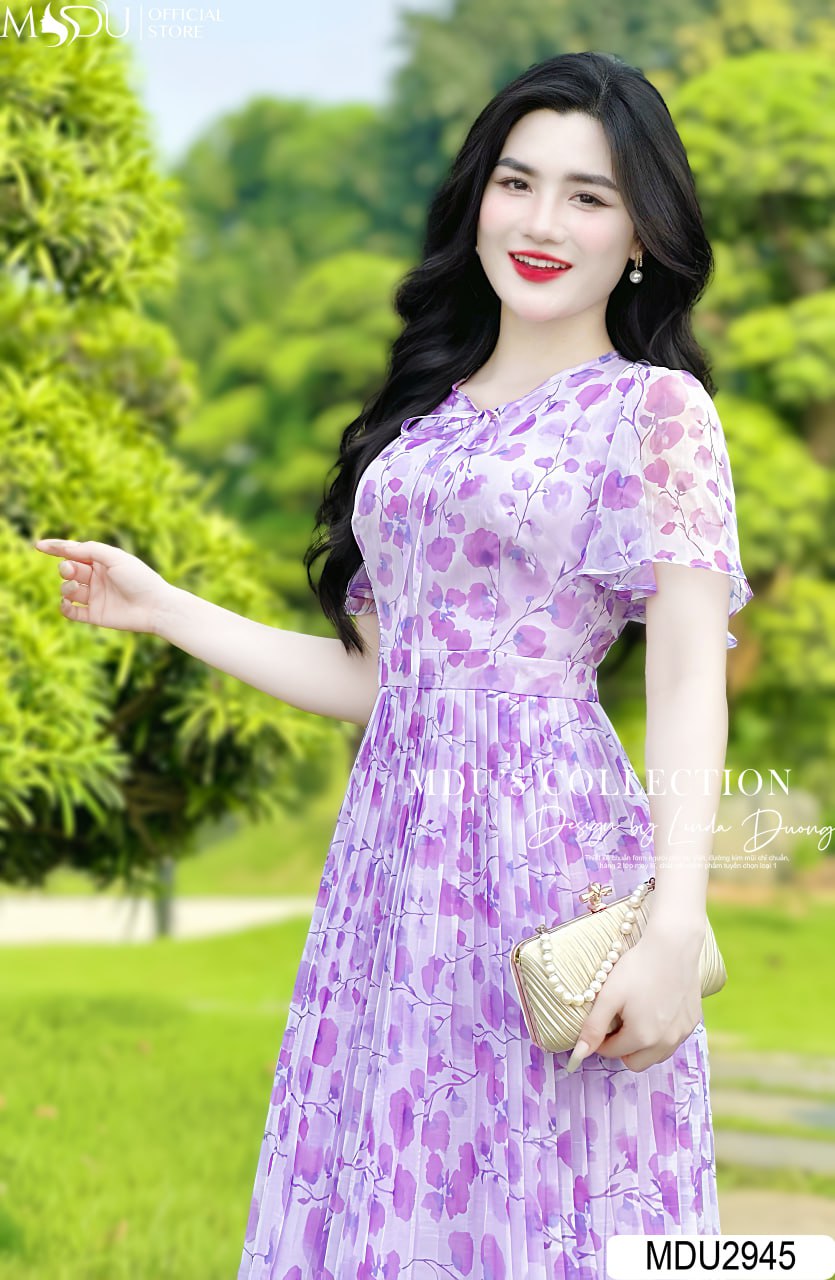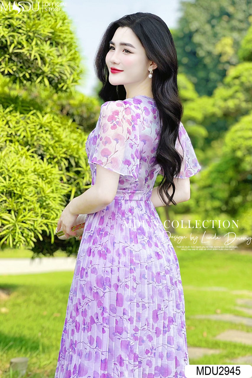 Váy Thiết Kế MDU2945 – Sự Hài Hòa Giữa Màu Tím Trang Nhã Và Chất Liệu Tơ Hàn Mềm Mịn
