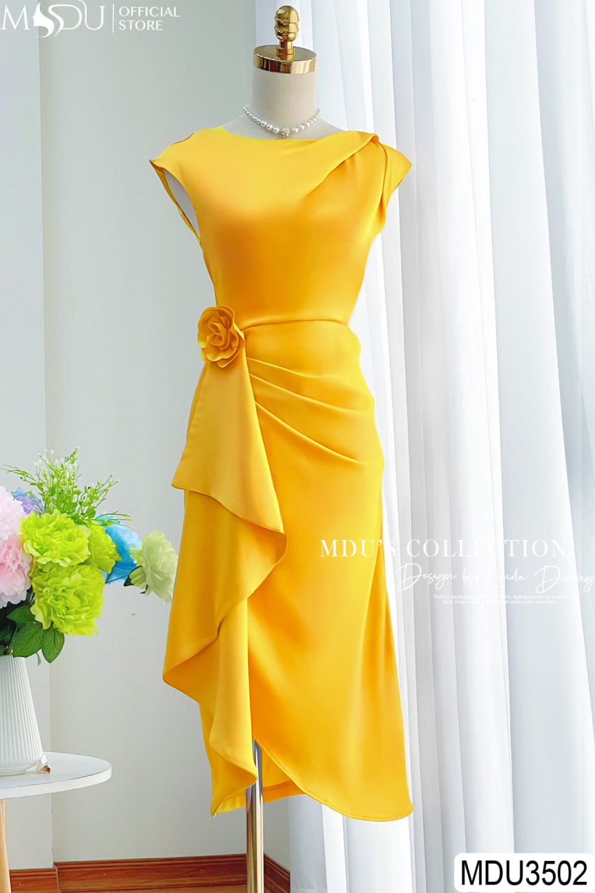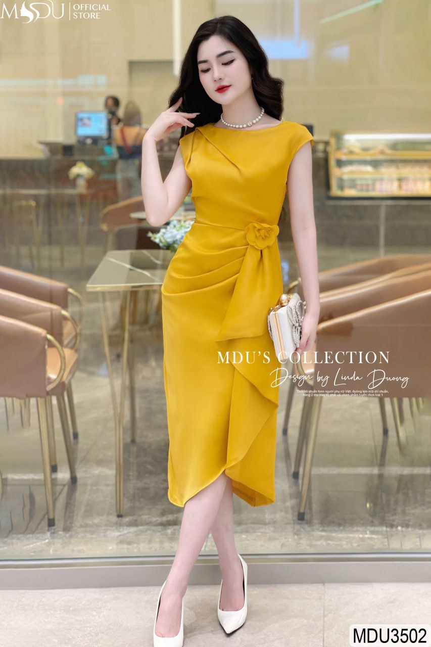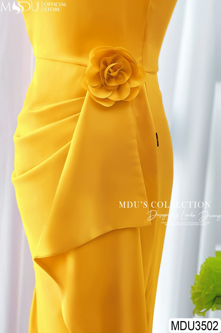 MDU3502 nổi bật với thiết kế hoa đính rời, tạo nên điểm nhấn tinh tế và thanh lịch cho chiếc váy. Đặc biệt, chi tiết ly eo được thiết kế khéo léo giúp che bụng cực tốt, tôn lên vóc dáng mảnh mai và quyến rũ của người mặc. Màu vàng của váy thêm phần nổi bật và phù hợp với quý cô yêu thích sự nhẹ nhàng, thanh lịch.