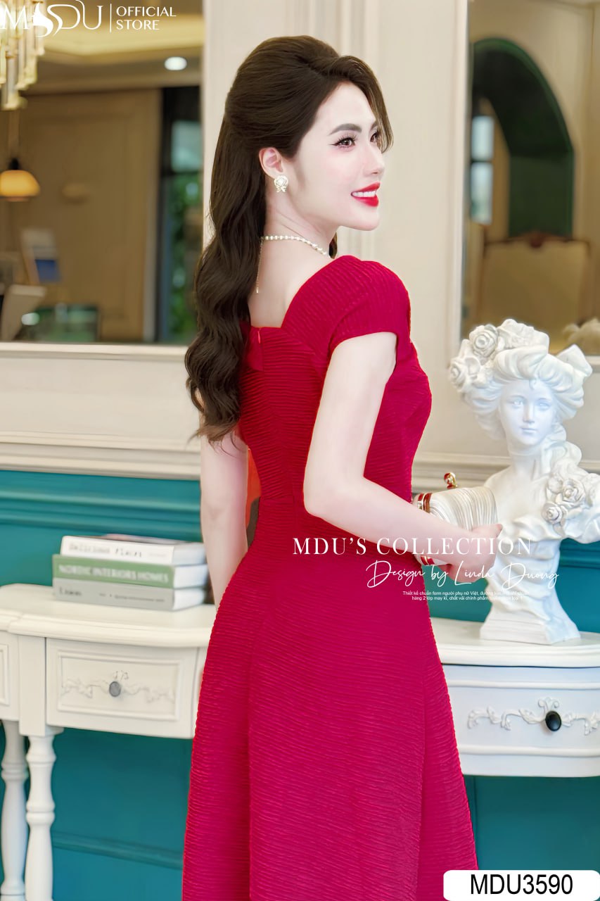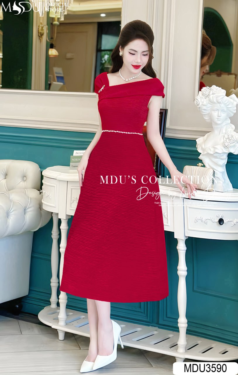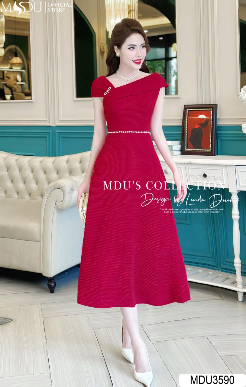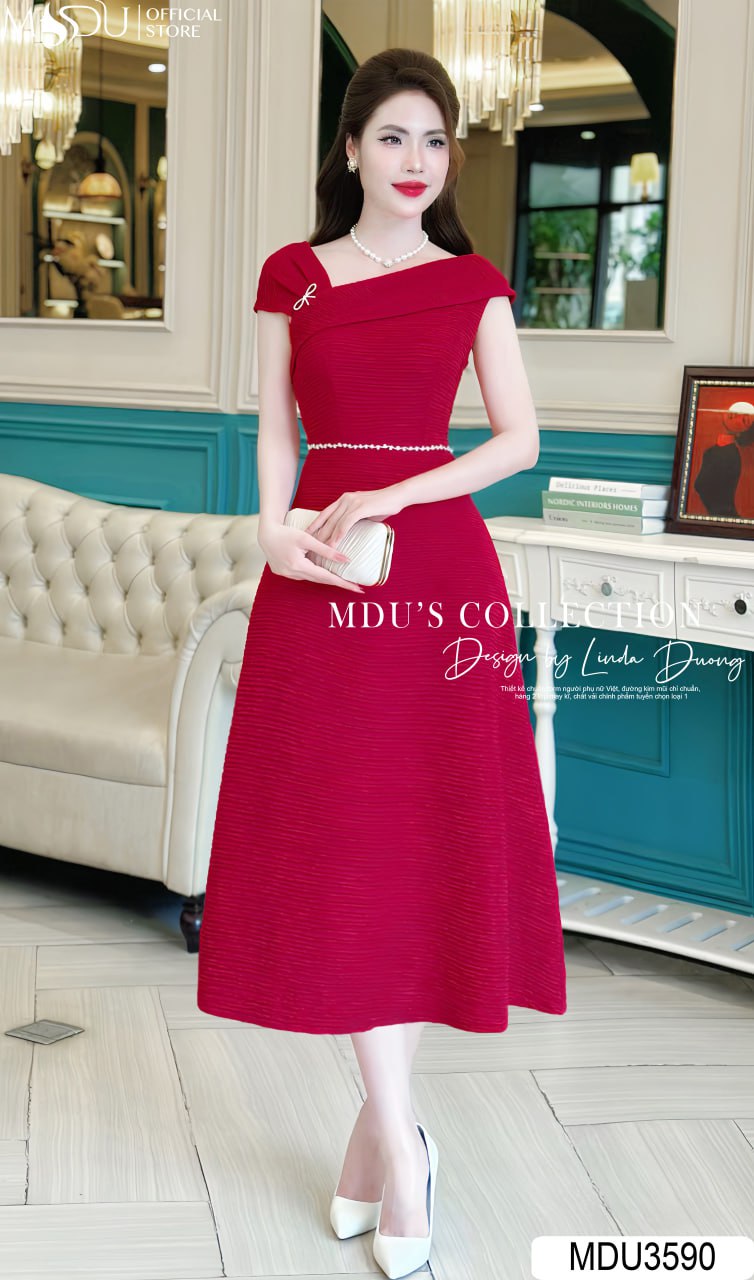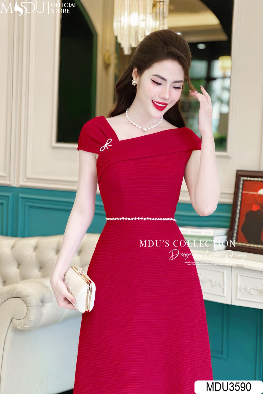 Váy Đầm Dự Tiệc MDU3590 – Sang Trọng với Chất Visco Nhật Bản và Điểm Nhấn Cài Ngọc Nơ