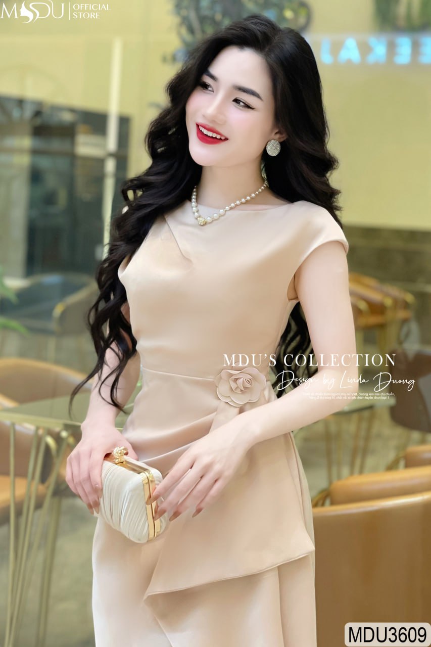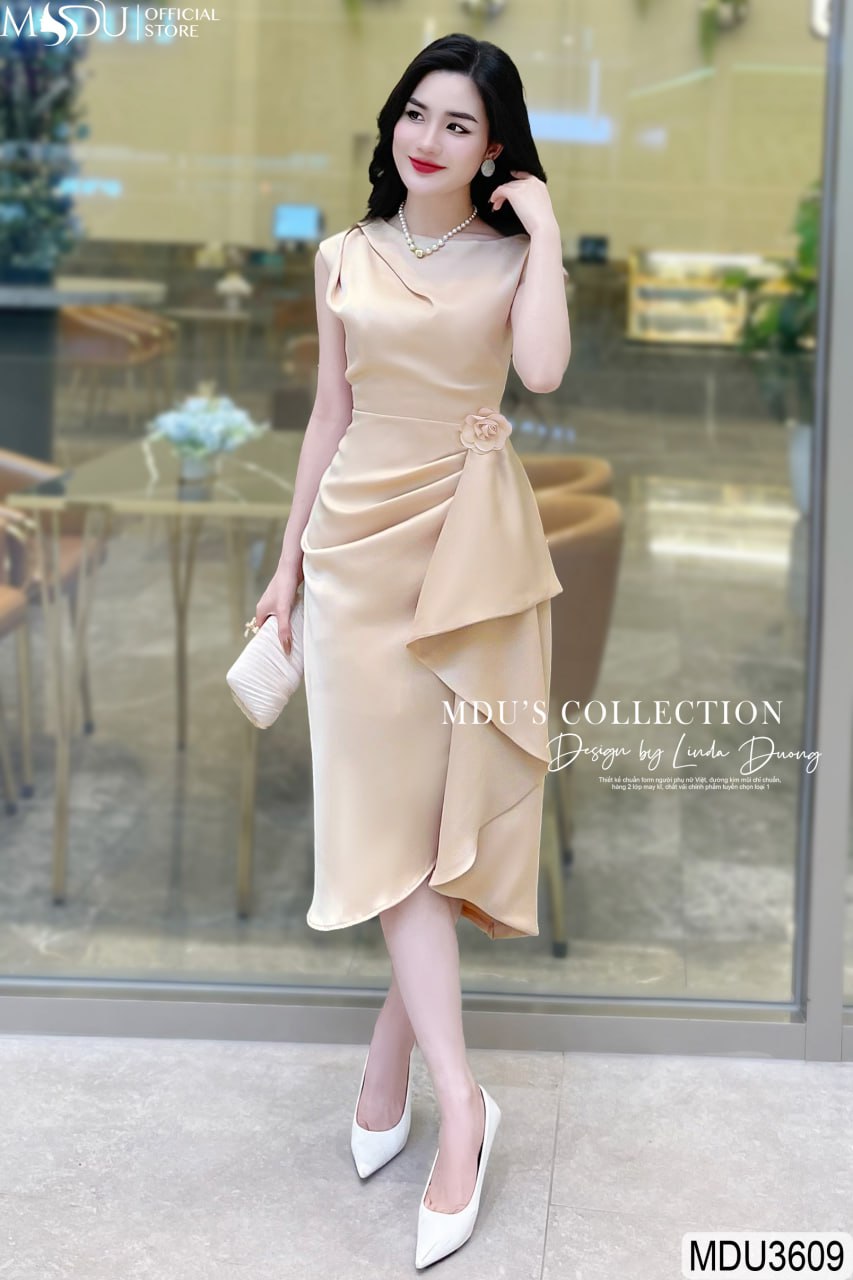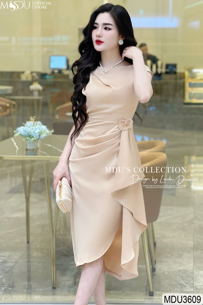 Thiết kế của váy MDU3609 tạo nên sự khác biệt nhờ hoa đính rời tại eo, một điểm nhấn không chỉ tăng thêm sự quyến rũ mà còn giúp che khuyết điểm một cách hiệu quả. Những nếp xếp ly tại eo được may tỉ mỉ, giúp tạo nên vòng eo thon gọn, tôn lên đường cong nữ tính. Dáng váy xẻ nhẹ nhàng tạo sự uyển chuyển trong từng bước đi, làm nổi bật vẻ đẹp thanh thoát và tự tin của người mặc.