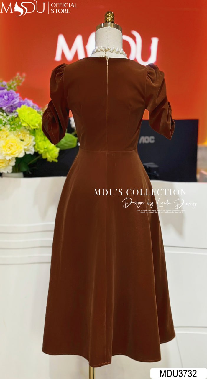 Với sắc nâu trầm ấm, MDU3732 mang lại phong cách thanh lịch, quý phái nhưng không kém phần hiện đại. Phần chất liệu nhung mịn màng kết hợp với kiểu dáng váy ôm nhẹ giúp tôn lên những đường cong quyến rũ của người mặc, mang lại sự tự tin và cuốn hút. Đây là mẫu váy lý tưởng cho các buổi tiệc, sự kiện quan trọng hoặc những dịp gặp gỡ cần sự trang trọng.