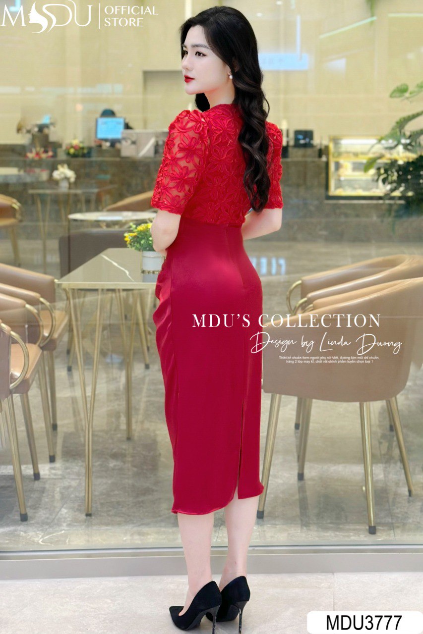 Chất liệu ren phối lụa Hàn cao cấp mang đến sự mềm mại, nhẹ nhàng, không bai nhão, không xù lông và đặc biệt không gây kích ứng da. Thiết kế này rất thích hợp cho những bữa tiệc sang trọng, đi làm hay dạo phố với tính ứng dụng cao, cùng điểm nhấn xẻ tà bên phải đầy cuốn hút. Váy dự tiệc MDU3777 được tạo ra nên từ sự kết hợp tinh tế giữa chất liệu lụa cao cấp và ren, mang lại sự thoải mái tối đa cho người mặc. Với đặc tính thoáng mát, co giãn tốt và đường may khéo léo, Chiếc váy này không chỉ tôn lên vẻ đẹp quyến rũ mà còn che giấu một cách hiệu quả. Thiết kế tinh tế, đặc biệt ở phần cổ và eo, giúp tôn lên đường cong hoàn hảo, mang lại sự tự động