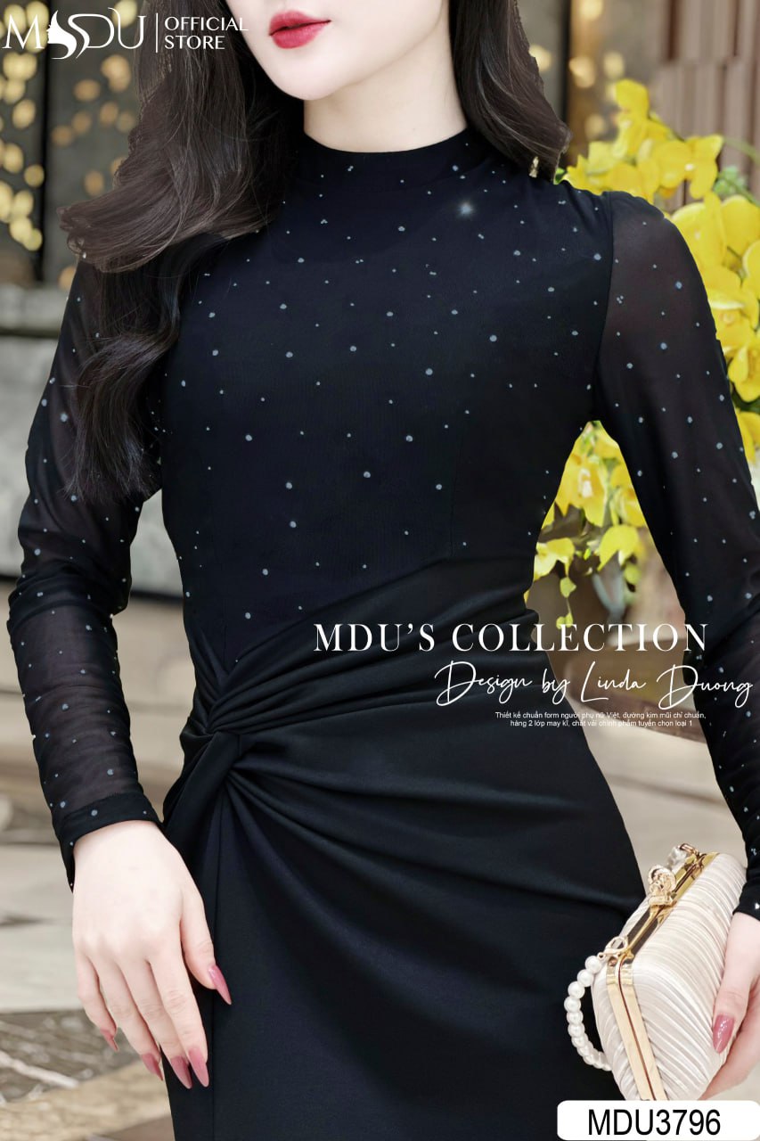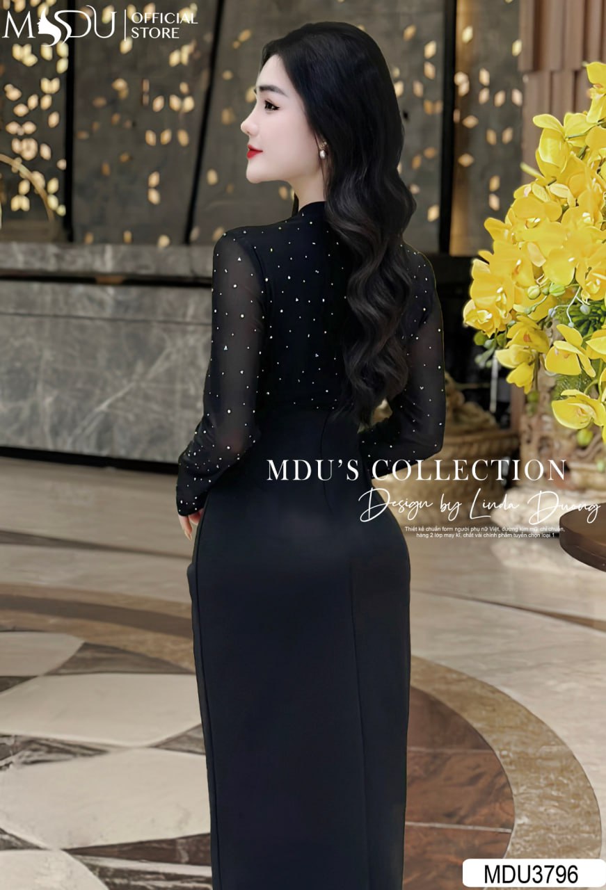 Gam màu đen bí ẩn kết hợp với dáng váy ôm nhẹ giúp MDU3796 toát lên vẻ đẹp quyền lực và sang trọng. Chiếc váy dễ dàng phối hợp với nhiều phụ kiện, tạo nên phong cách tinh tế, phù hợp cho các buổi tiệc hoặc những dịp gặp gỡ quan trọng.