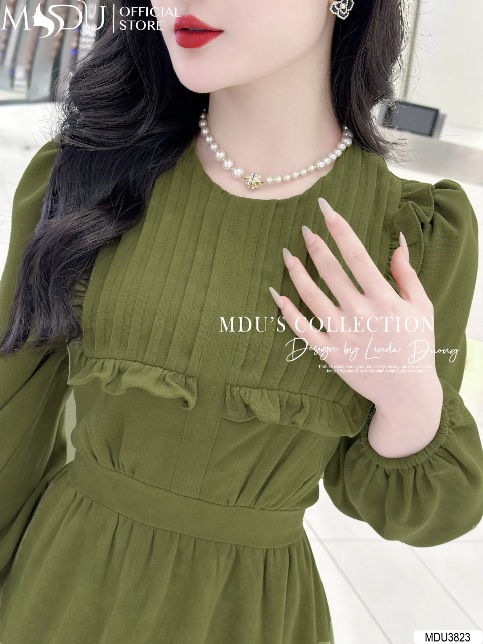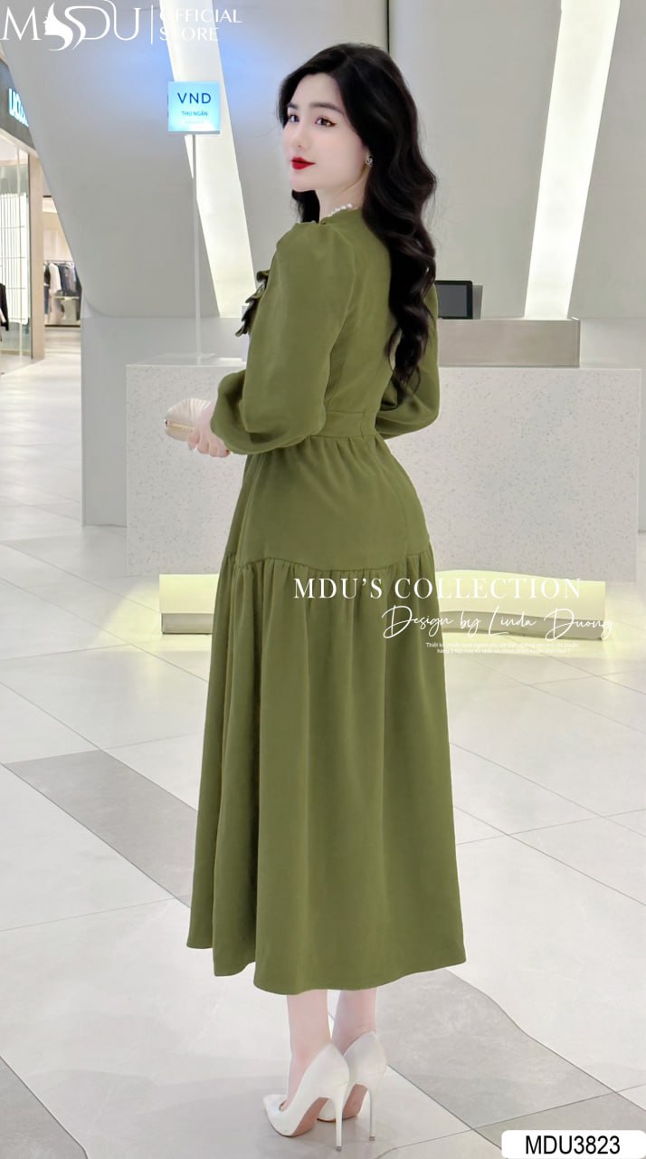 Điểm nhấn của váy MDU3823 chính là thiết kế dáng xòe nhẹ nhàng, bay bổng, mang lại vẻ đẹp thanh lịch và duyên dáng. Phần tay bồng tạo nên sự nổi bật và cuốn hút, đồng thời giúp che đi những khuyết điểm ở phần bắp tay. Thiết kế này không chỉ thích hợp để đi công sở mà còn phù hợp cho các buổi dạo chơi, tiệc tùng, với tính ứng dụng cao và không bao giờ lỗi mốt.