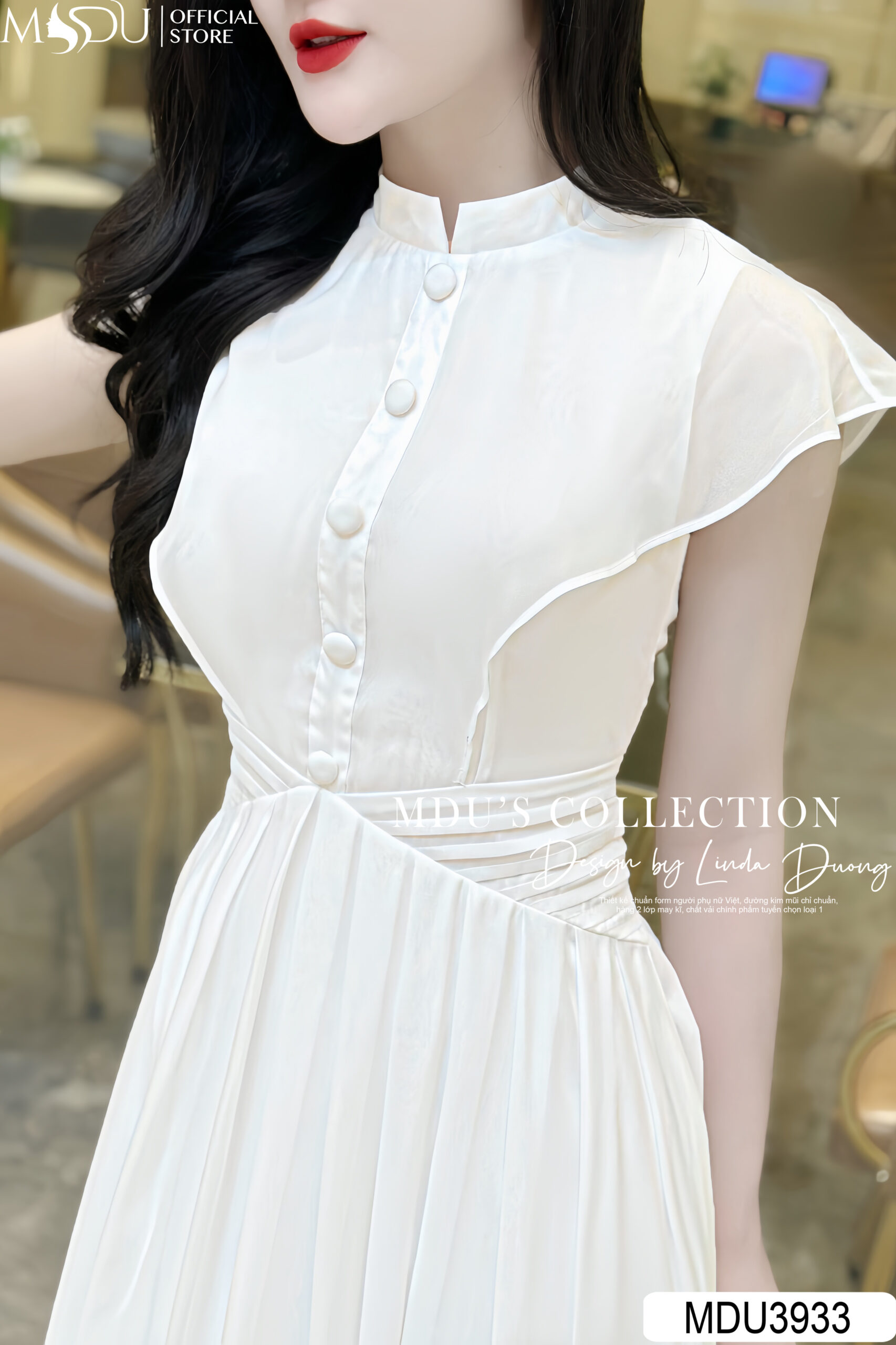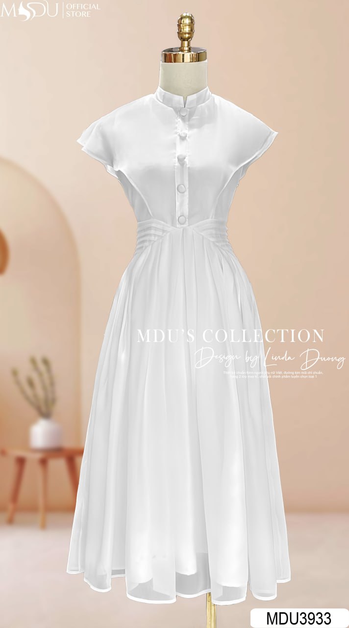 Váy Đầm Công Sở MDU3933 – Trắng Tinh Khôi, Tay Cánh Tiên Cuốn Hút Từ MDUfashion