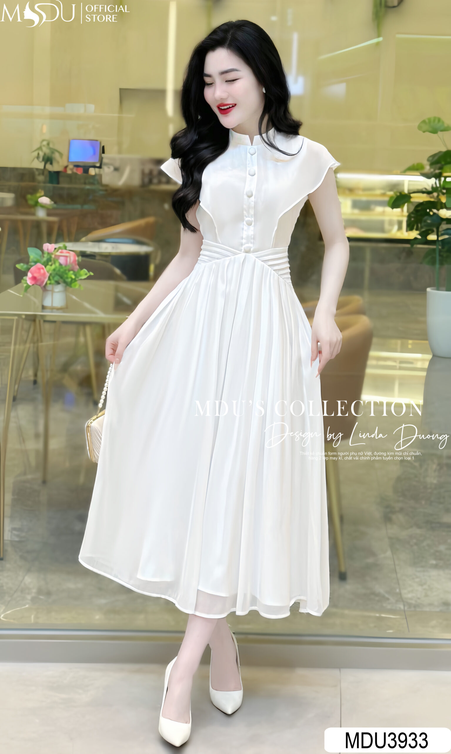 MDUfashion, một trong những hãng thiết kế váy đầm thời trang hàng đầu tại Việt Nam, luôn mang đến những sản phẩm đẳng cấp, tinh tế và cuốn hút cho phái đẹp. Váy đầm công sở MDU3933 với gam màu trắng tinh khôi kết hợp dáng tay cánh tiên là minh chứng hoàn hảo cho sự thanh lịch và quý phái.